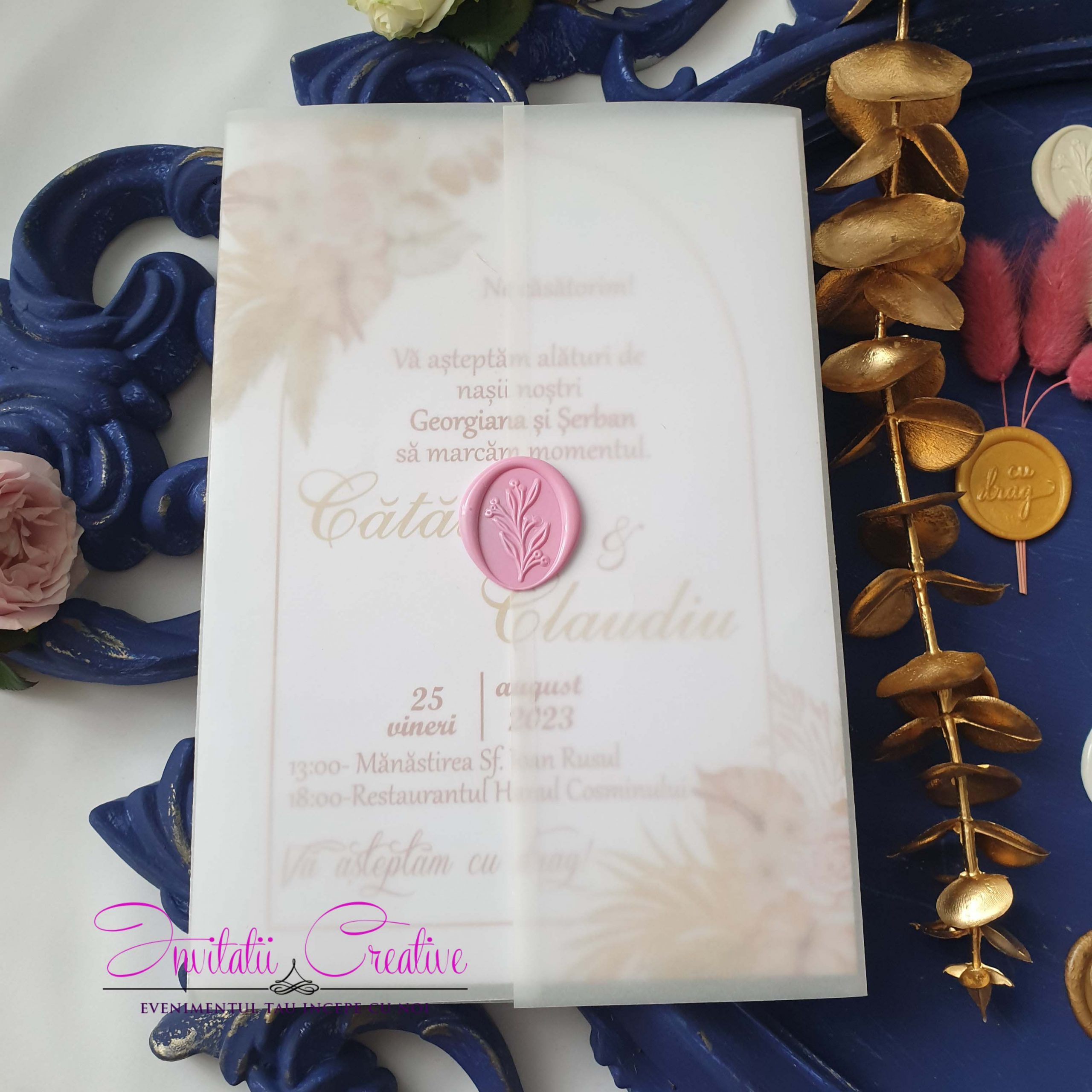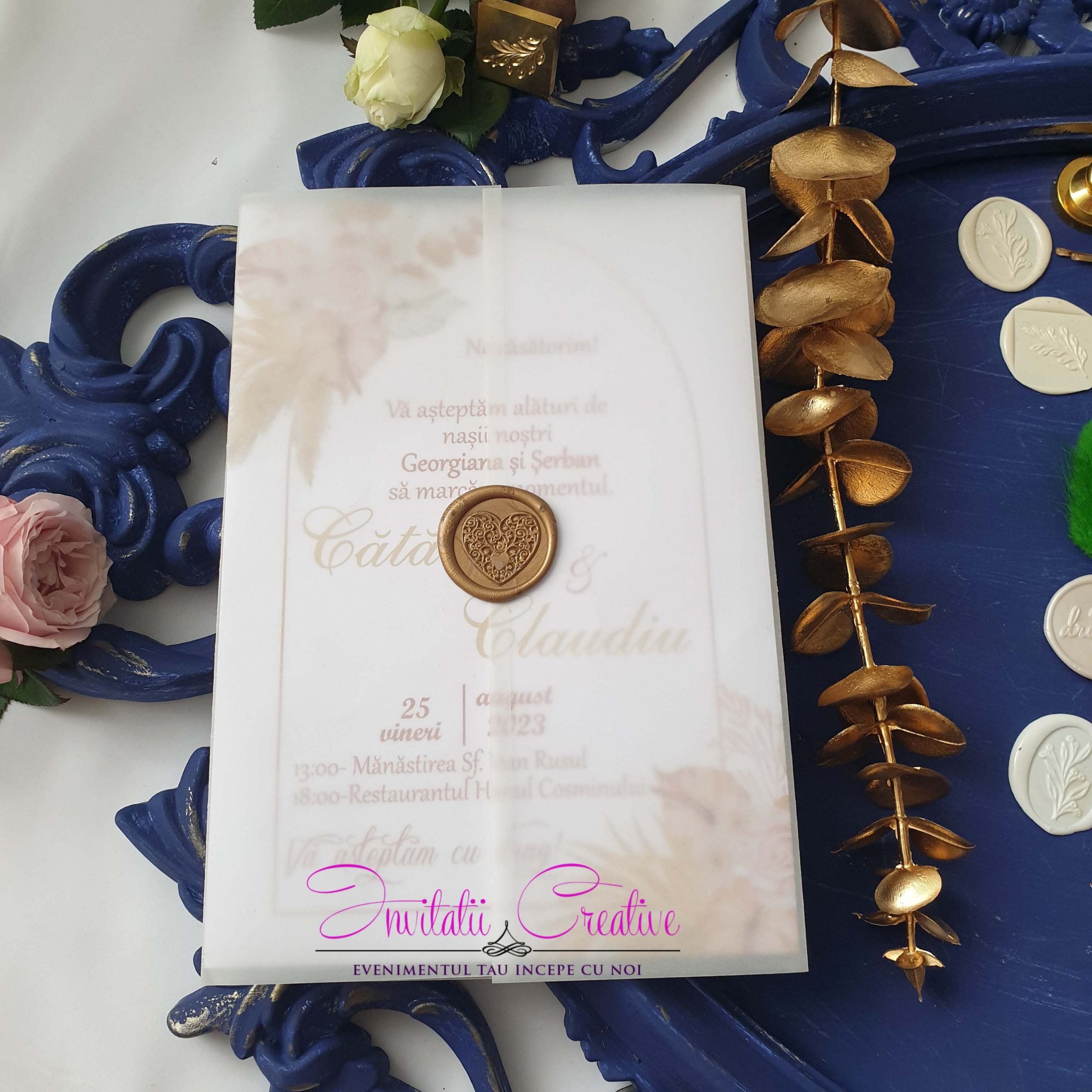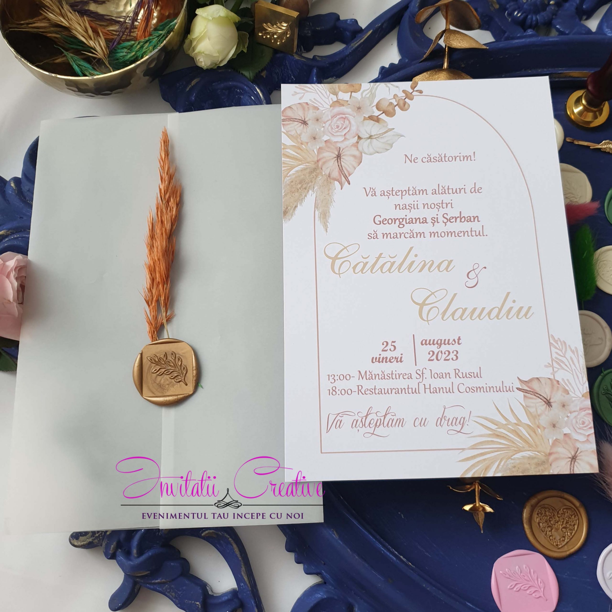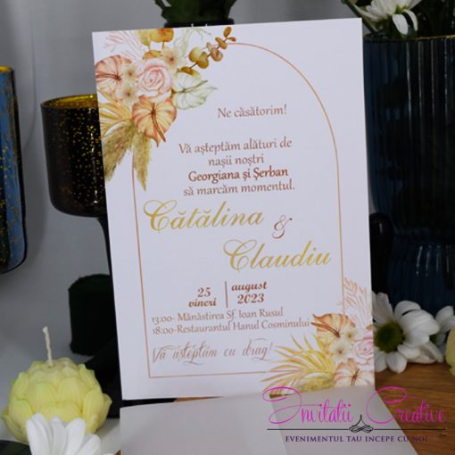 Invitatie handmade nunta Motiv Traditional cu Flori