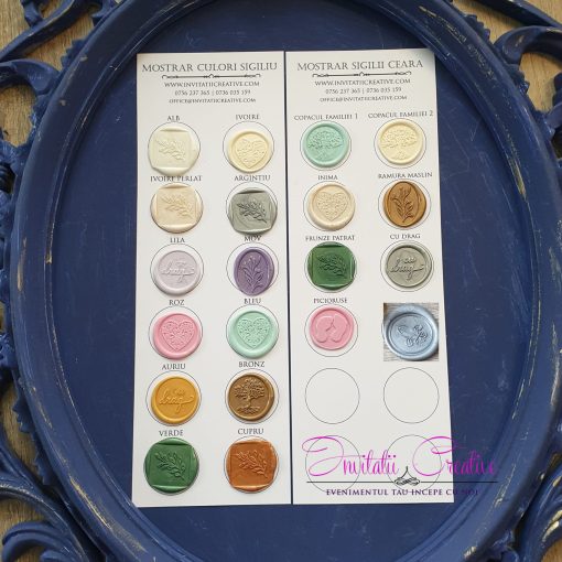 Ultima poza din galeria produsului este MOSTRAR de culoare pentru ceara si pentru modelul sigiliului.