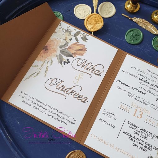 Invitatie handmade nunta Motiv Traditional cu Flori