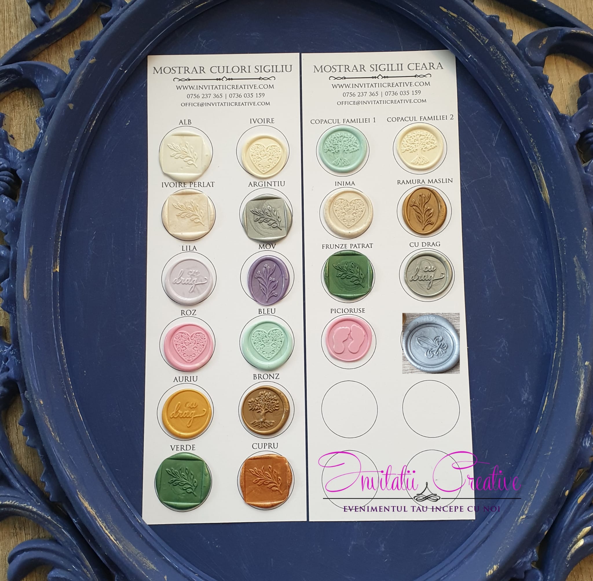 Ultima poza din galeria produsului este MOSTRAR de culoare pentru ceara si pentru modelul sigiliului.