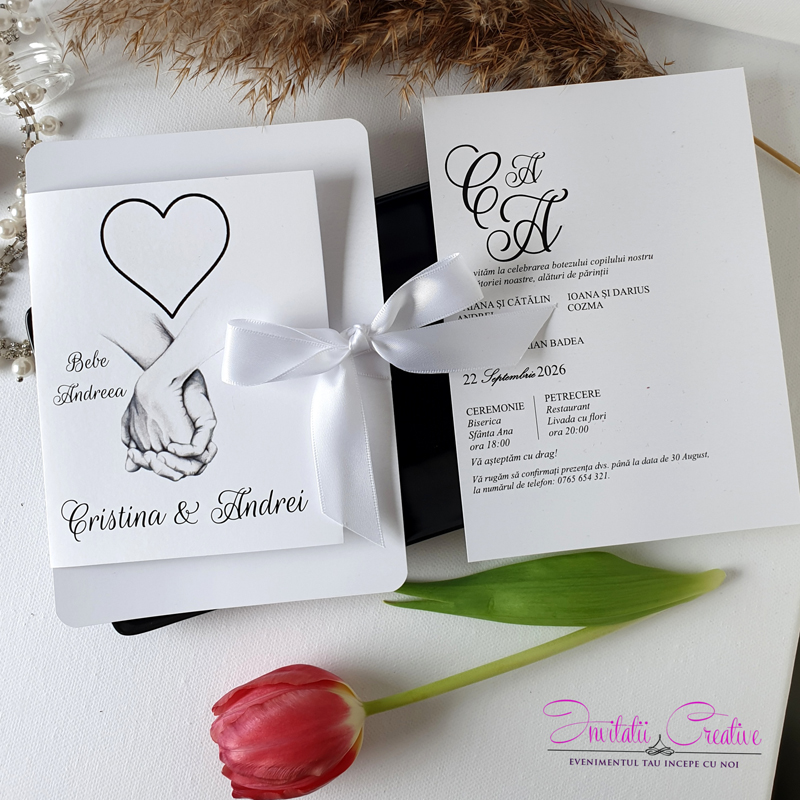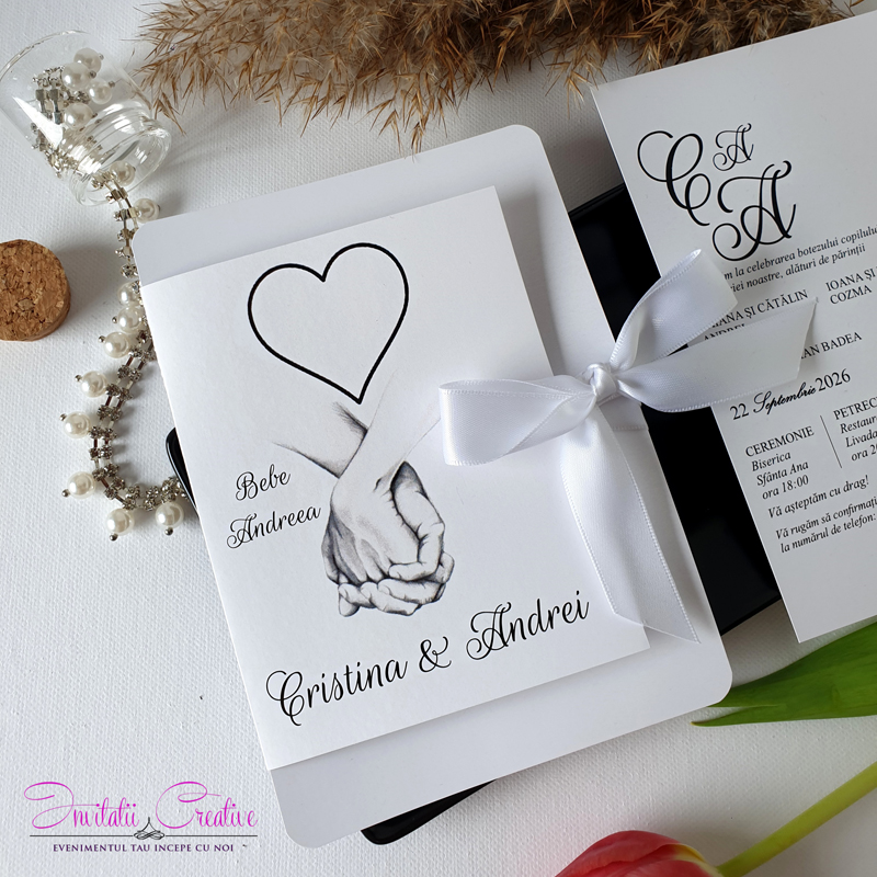 Invitatii de nunta si botez cu maini si inima