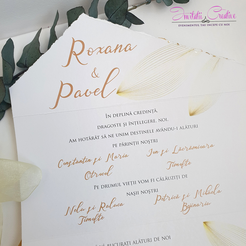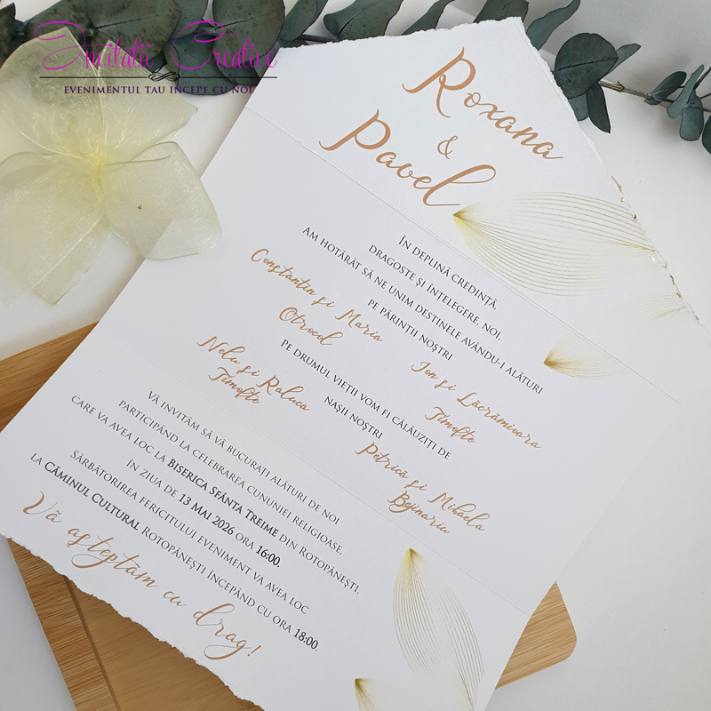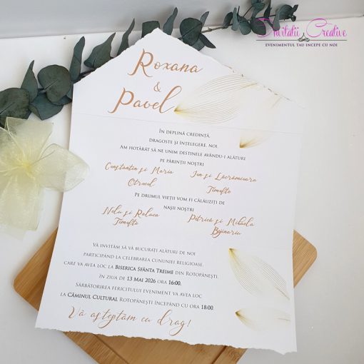 Invitatie de nunta simpla cu detalii fine aurii