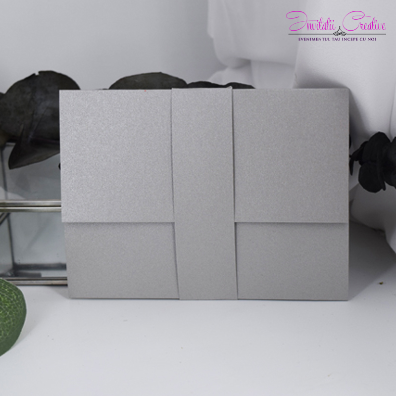 Invitatie de Nunta Argintie Ieftina cu Motiv Elegant Vintage realizata pe carton sidefat cu print laser.