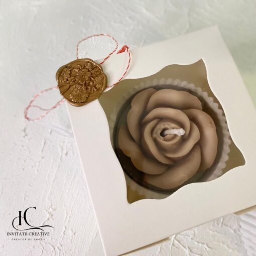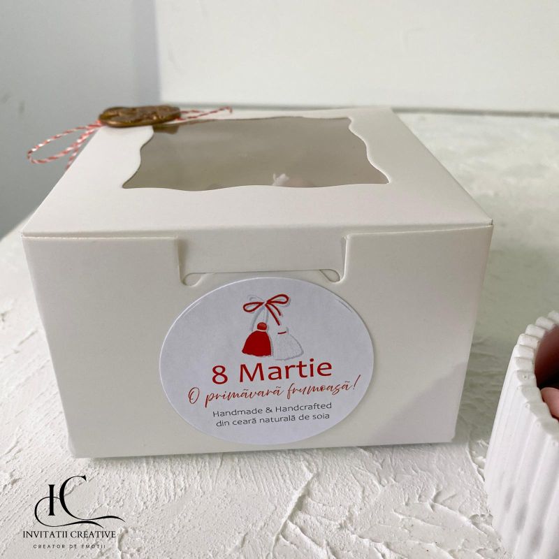Lumanarea parfumata vine ambalata, gata de a fi dăruită.