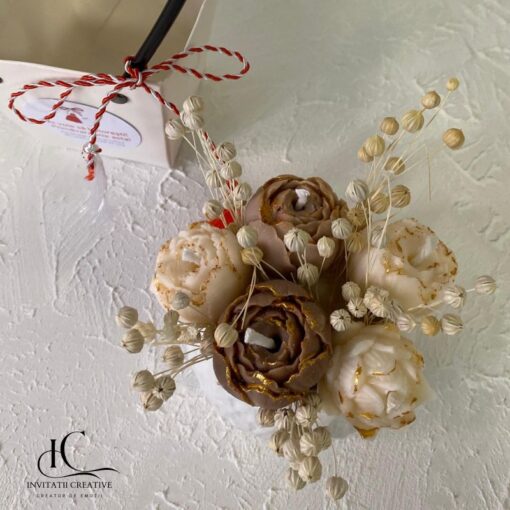Aranjament Cadou 8 Martie Lumanare Parfumata Boboci Bujori face parte din categoria Martisor