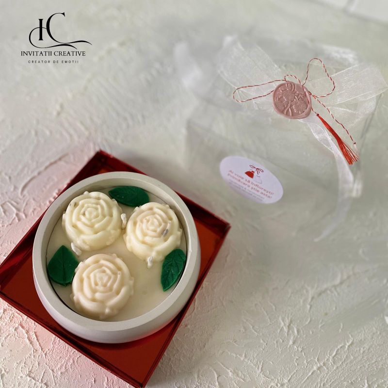 Cadou Special sub formă de Lumanare din ceara naturala de soia, parfumata cu note delicate florale premium.