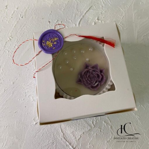 Lumanarea parfumata vine ambalata, gata de a fi dăruită.