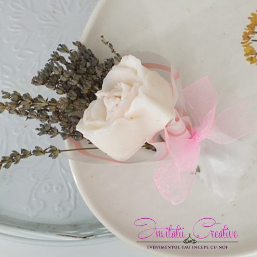 Marturie buchetel cu trandafir alb si flori de lavanda