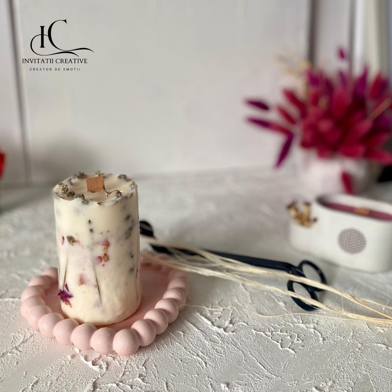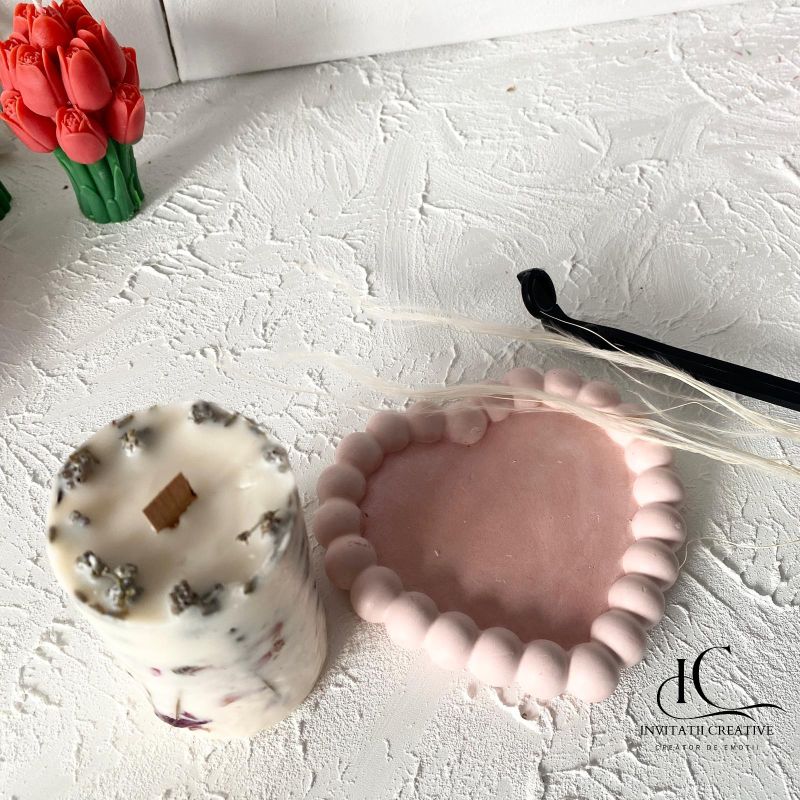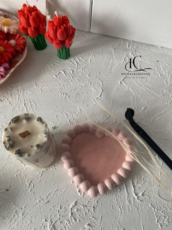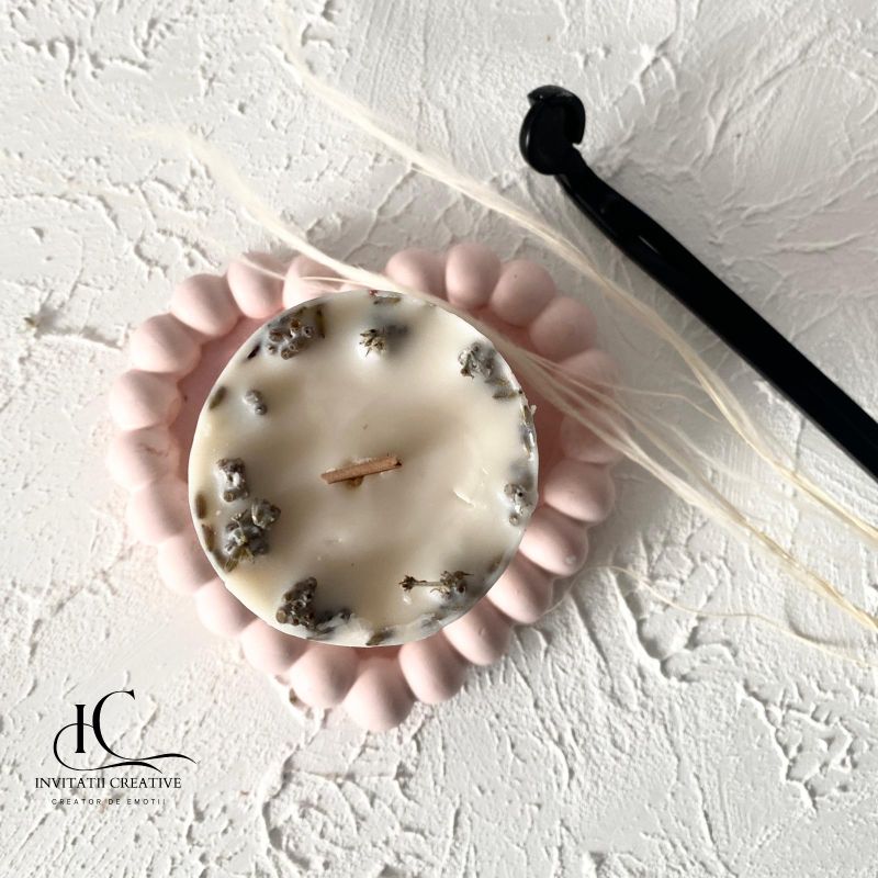 Set Cadou Lumanare cu Lavanda si Tavita suport Inima