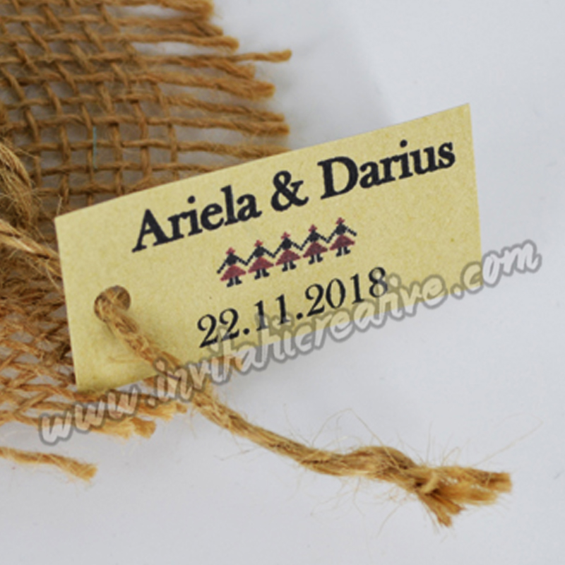 Etichetele sunt create din cartoane speciale cu modele elegante, usor de asortat cu marturia, sticla de vin, cutiuta de prajituri sau chiar invitatia aleasa.