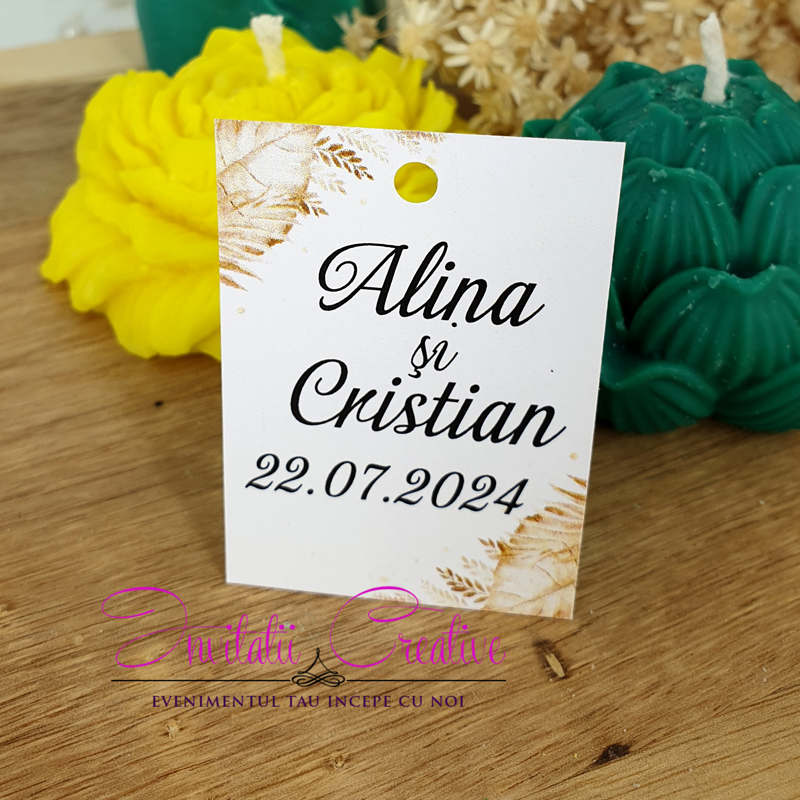 Etichetele pot fi personalizate cu numele mirilor si data evenimentului sau numele bebelusului si data evenimentului/data nasterii, in functie de momentul celebrat.