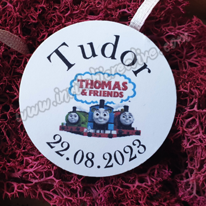 Etichetele pot fi personalizate cu numele mirilor si data evenimentului sau numele bebelusului si data evenimentului/data nasterii, in functie de momentul celebrat.