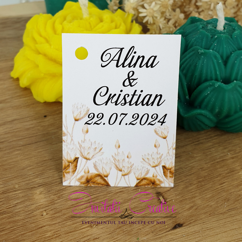Etichetele pot fi personalizate cu numele mirilor si data evenimentului sau numele bebelusului si data evenimentului/data nasterii, in functie de momentul celebrat.