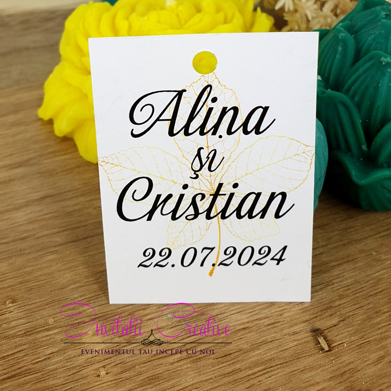 Etichetele pot fi personalizate cu numele mirilor si data evenimentului sau numele bebelusului si data evenimentului/data nasterii, in functie de momentul celebrat.