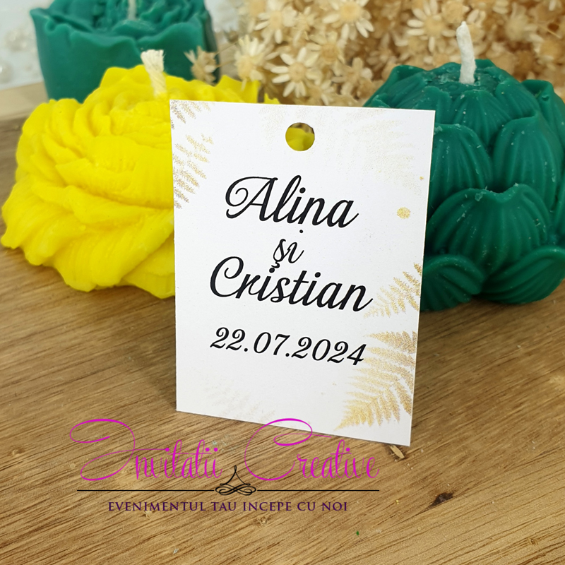 Etichetele pot fi personalizate cu numele mirilor si data evenimentului sau numele bebelusului si data evenimentului/data nasterii, in functie de momentul celebrat.