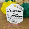 Etichetele pot fi personalizate cu numele mirilor si data evenimentului sau numele bebelusului si data evenimentului/data nasterii, in functie de momentul celebrat.