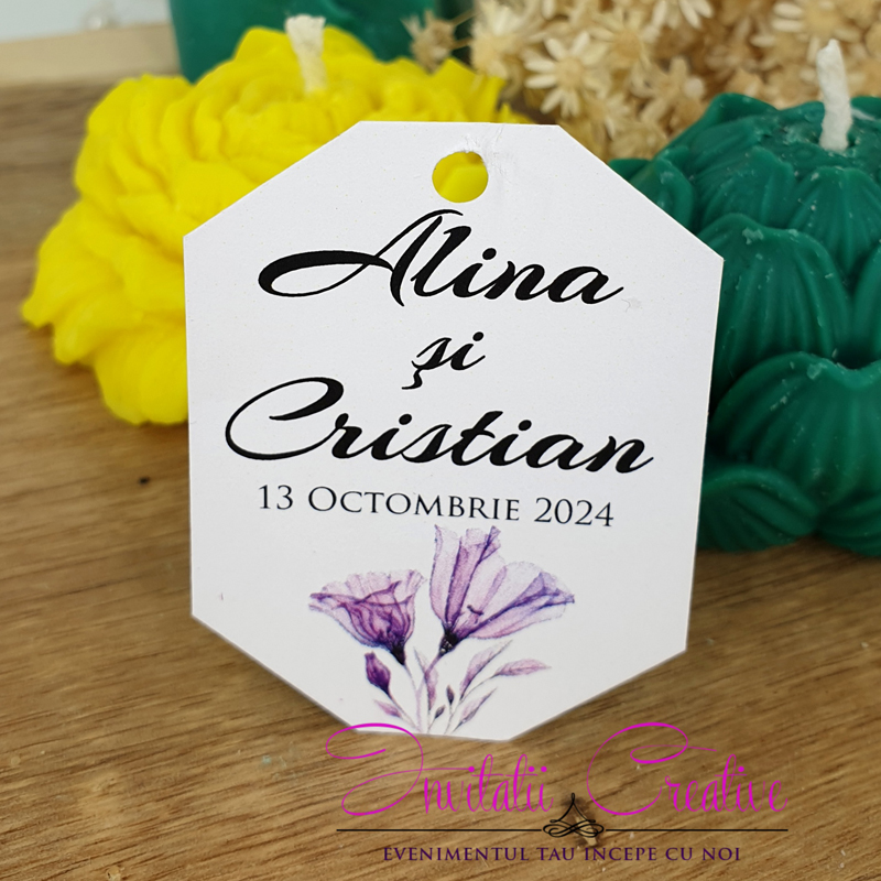 Etichetele pot fi personalizate cu numele mirilor si data evenimentului sau numele bebelusului si data evenimentului/data nasterii, in functie de momentul celebrat.