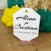 Etichetele pot fi personalizate cu numele mirilor si data evenimentului sau numele bebelusului si data evenimentului/data nasterii, in functie de momentul celebrat.