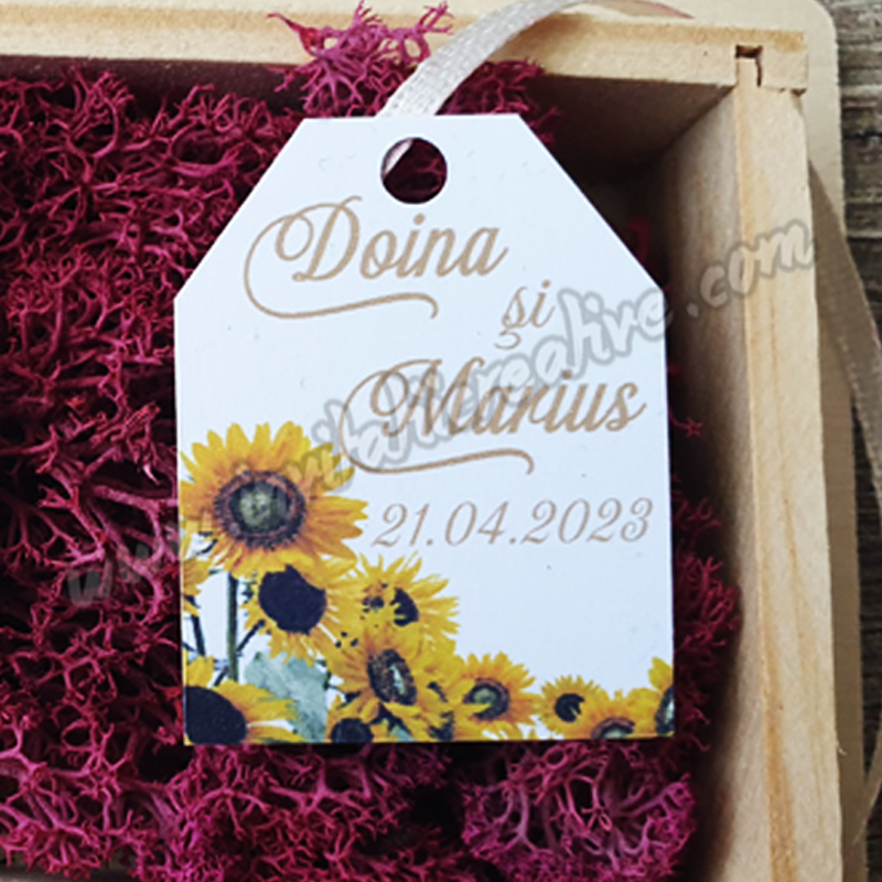 Etichetele pot fi personalizate cu numele mirilor si data evenimentului sau numele bebelusului si data evenimentului/data nasterii, in functie de momentul celebrat.
