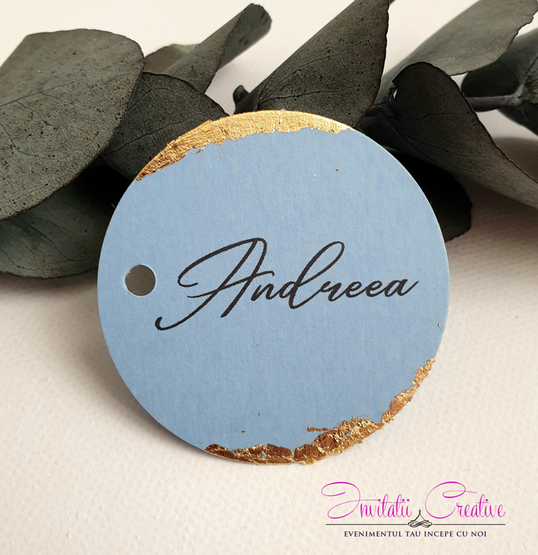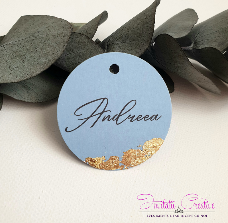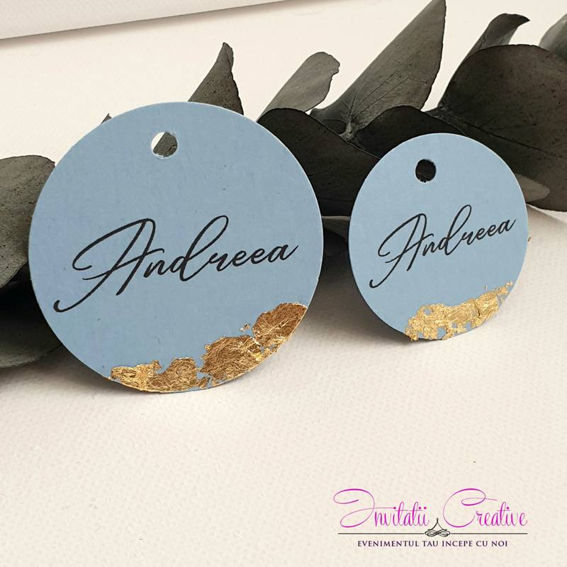 Caracteristici pentru: Etichete blue rotunde pentru marturii cu foita aurie