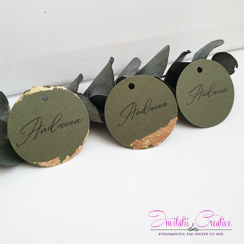 Etichete green rotunde pentru marturii cu foita aurie