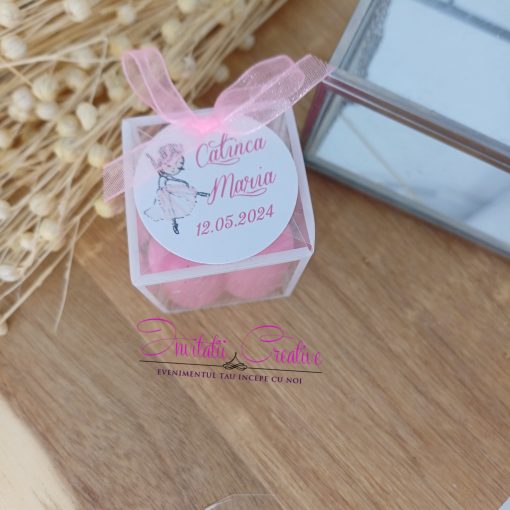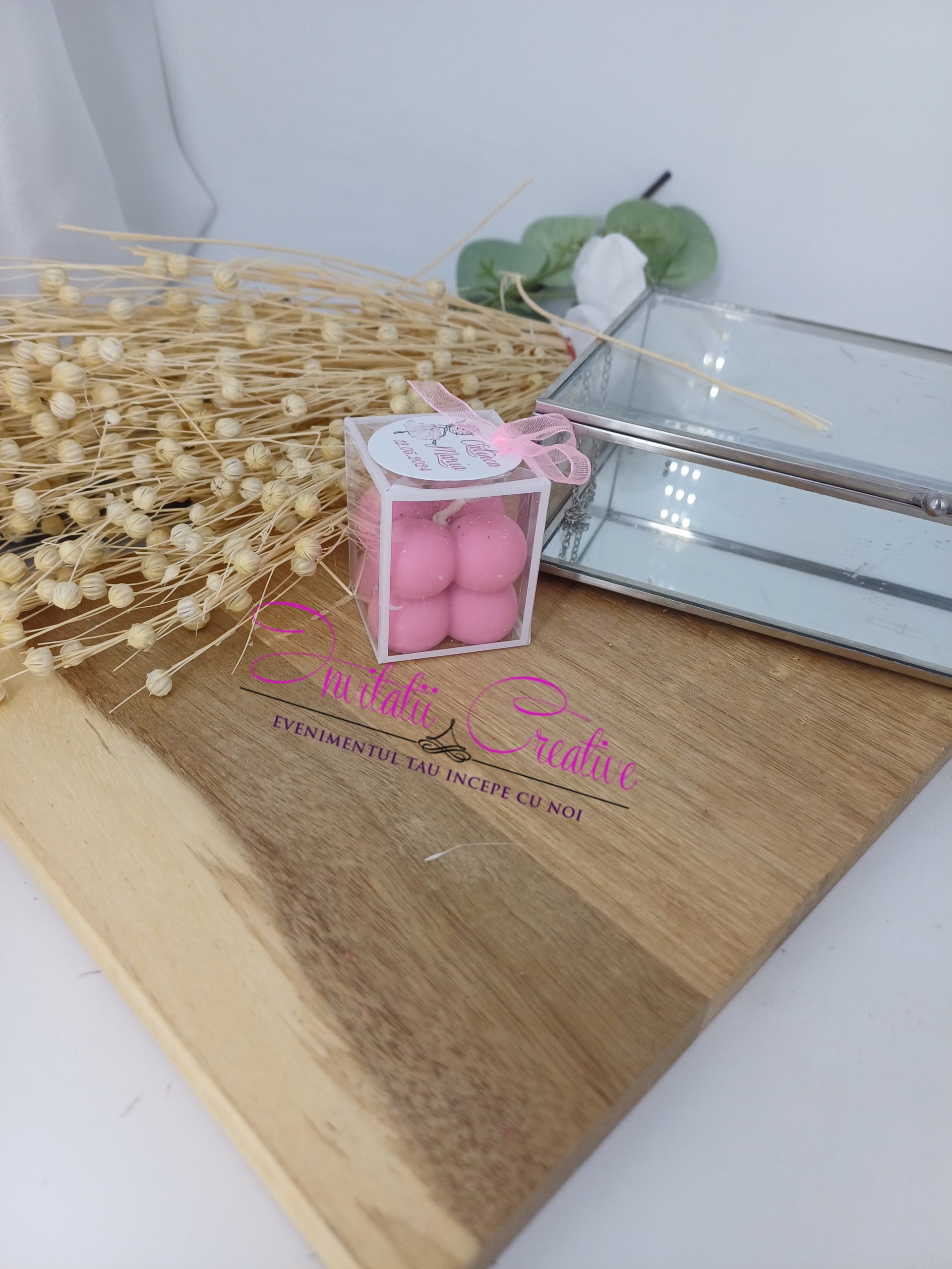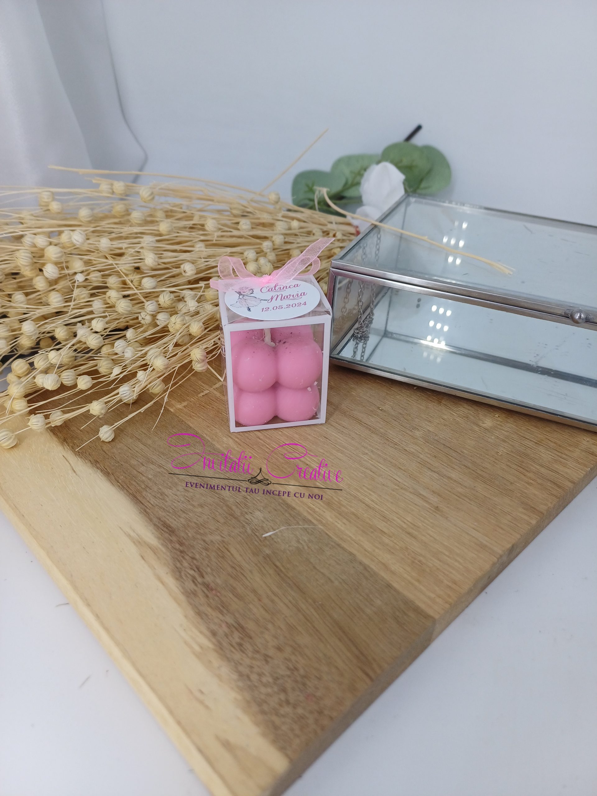 Marturie Botez Fete Lumanare parfumata roz Bubble in cutie Eleganta