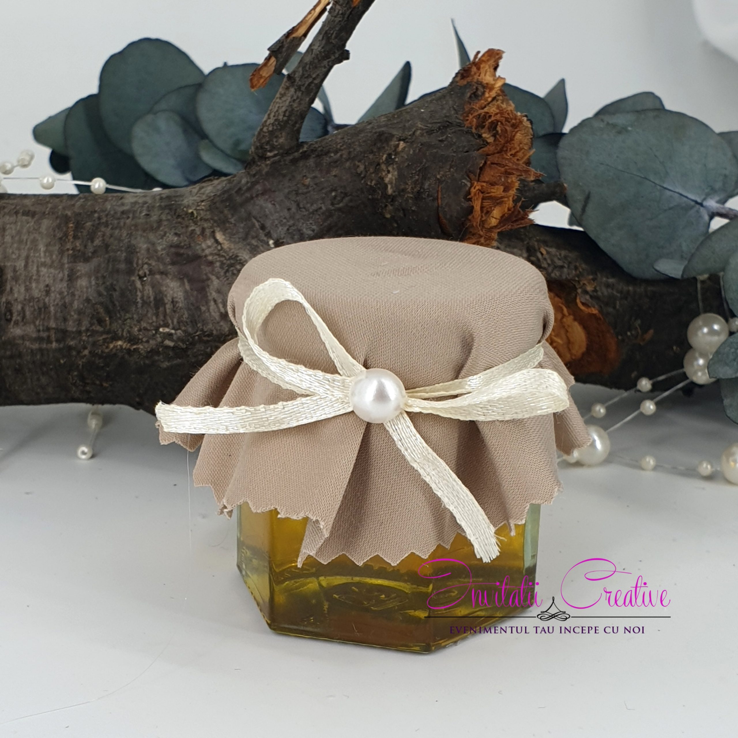 Marturie perfecta pentru invitatii veniti la eveniment. Borcanelul se poate personaliza cu eticheta cu imagine, nume si data, dupa preferinte.*