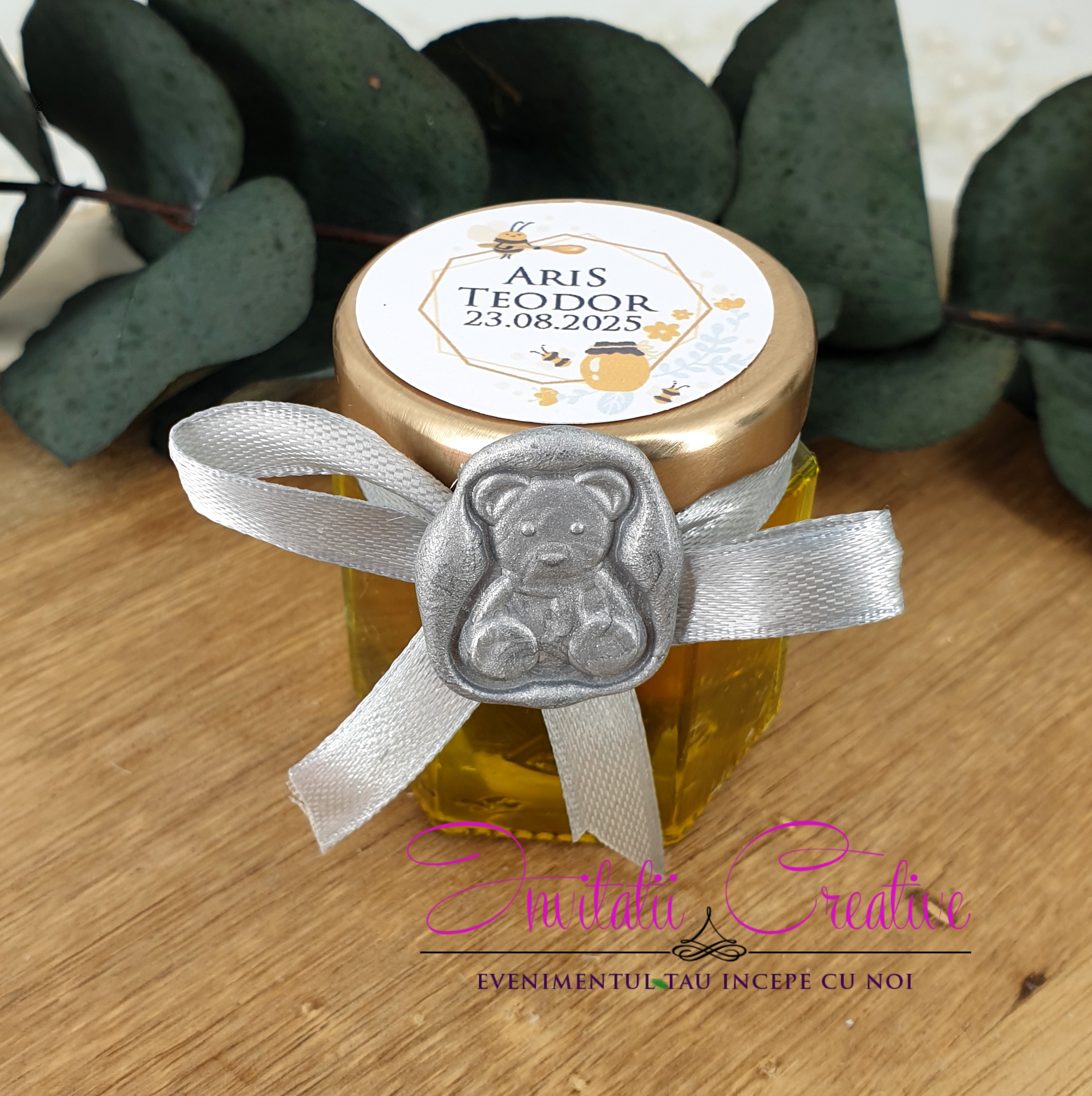 Marturie perfecta pentru invitatii veniti la eveniment. Borcanelul se poate personaliza cu eticheta cu imagine, nume si data, dupa preferinte.*