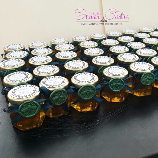 Marturie perfecta pentru invitatii veniti la eveniment. Borcanelul se poate personaliza cu eticheta cu imagine, nume si data, dupa preferinte.*