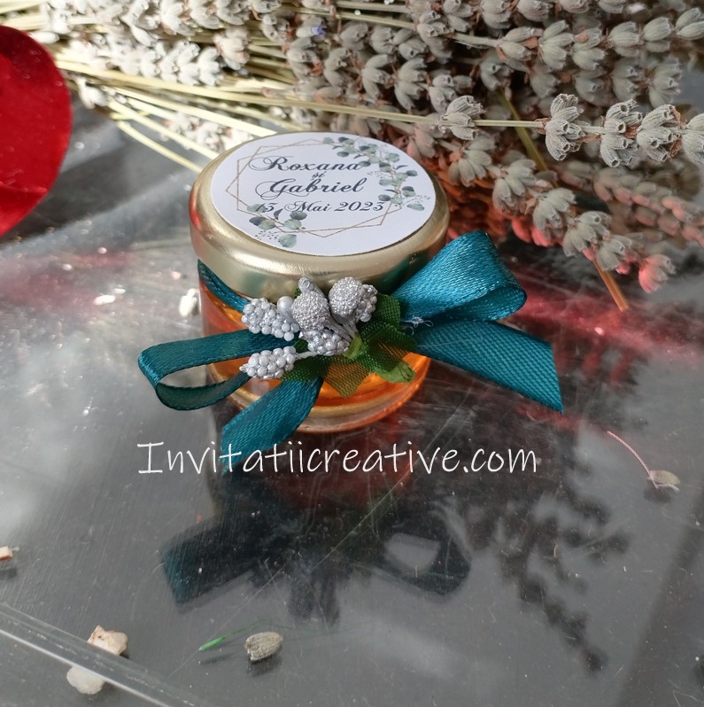 Marturie Borcanel Miere cu Verde Smarald cu Flori Argintii