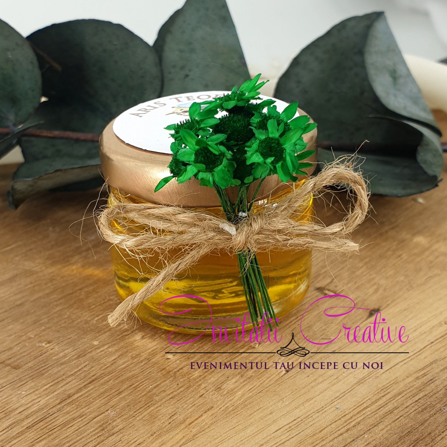 Marturie perfecta pentru invitatii veniti la eveniment. Borcanelul se poate personaliza cu eticheta cu imagine, nume si data, dupa preferinte.*