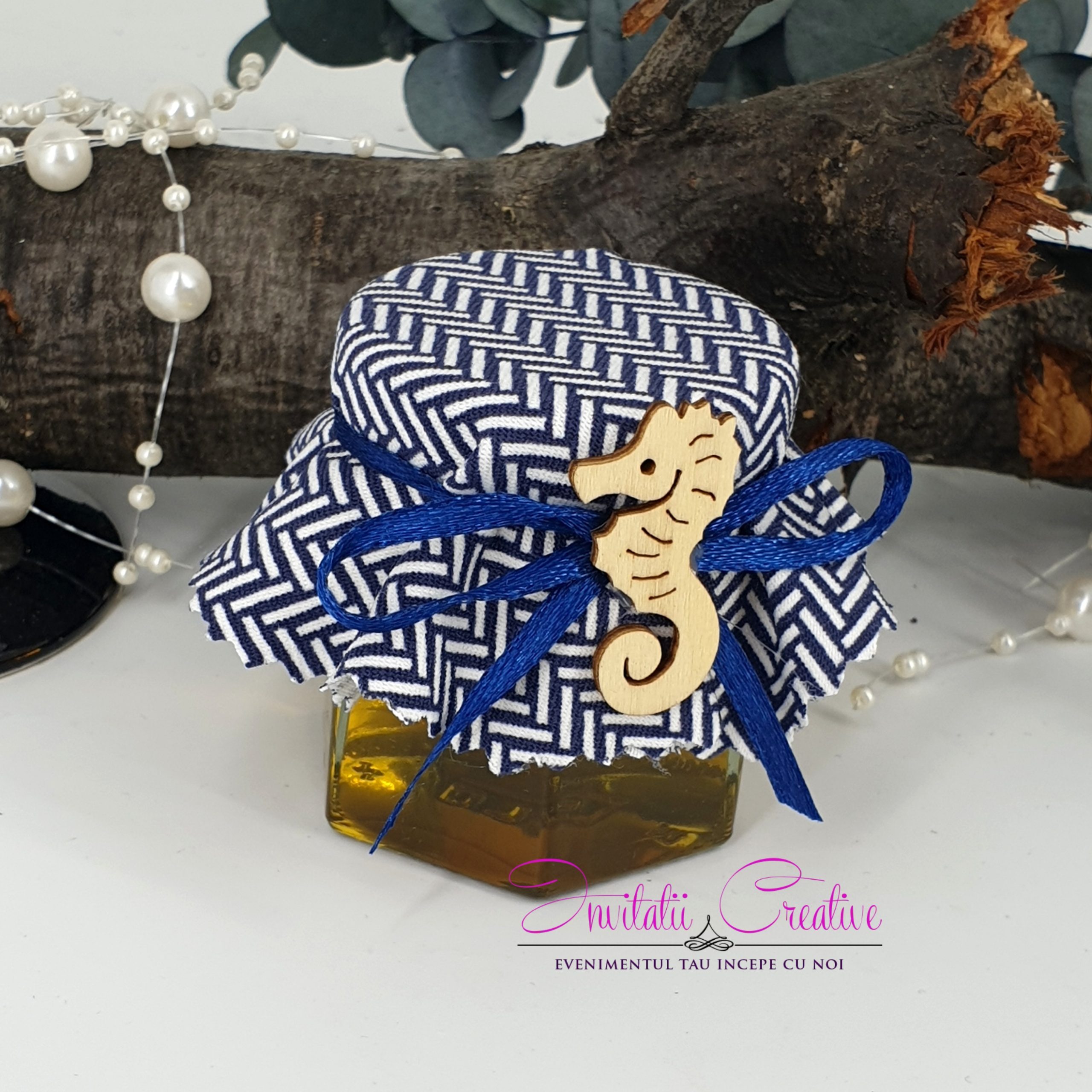 Marturie perfecta pentru invitatii veniti la eveniment. Borcanelul se poate personaliza cu eticheta cu imagine, nume si data, dupa preferinte.*