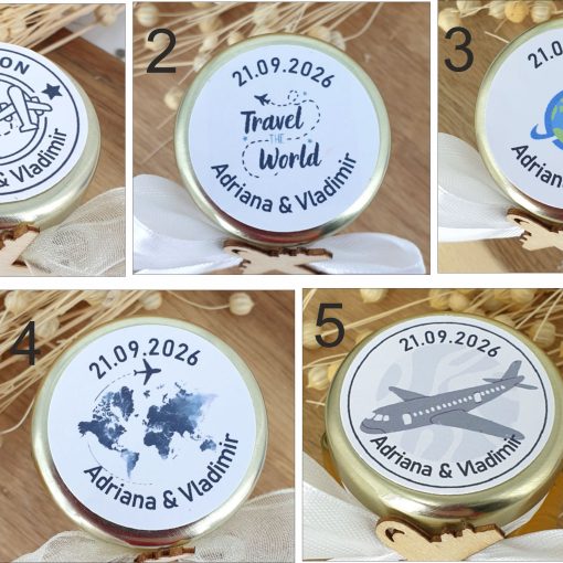 Marturie perfecta pentru invitatii veniti la eveniment. Borcanelul se poate personaliza cu eticheta cu imagine, nume si data, dupa preferinte.*