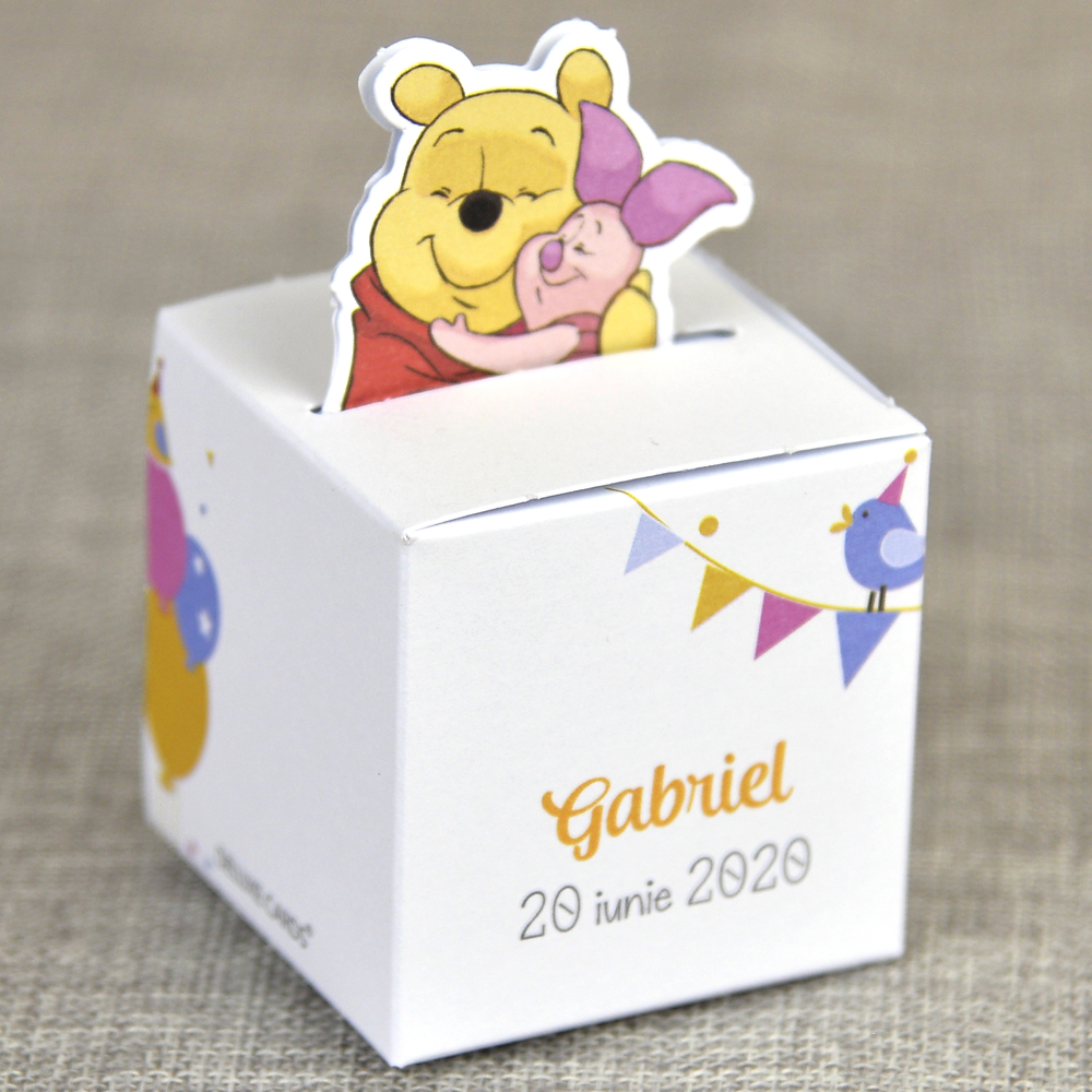 Marturie cutiuta colorata pentru fetite si baietei cu Ursuletul Winnie the Pooh, haioasa si potrivita evenimentului tau tematica.