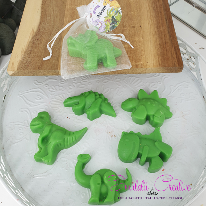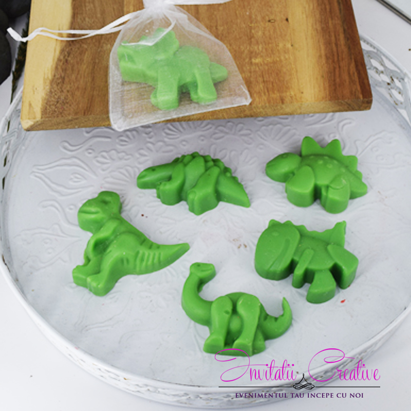 Marturie Botez Melts Tablete Aromaterapie Dinozaur mare. Marturiile vin amestecate 6 modele si puteti alege parfumul si culoarea dorite din optiuni.Tabletele Aromaterapie sunt realizate din ceară de soia, turnate manual, cu drag, în forme diferite, pentru a oferi un spectacol olfactiv intens*, atunci când se topesc în difuzorul de arome sau sunt puse in dulapul de haine sau de prosoape.