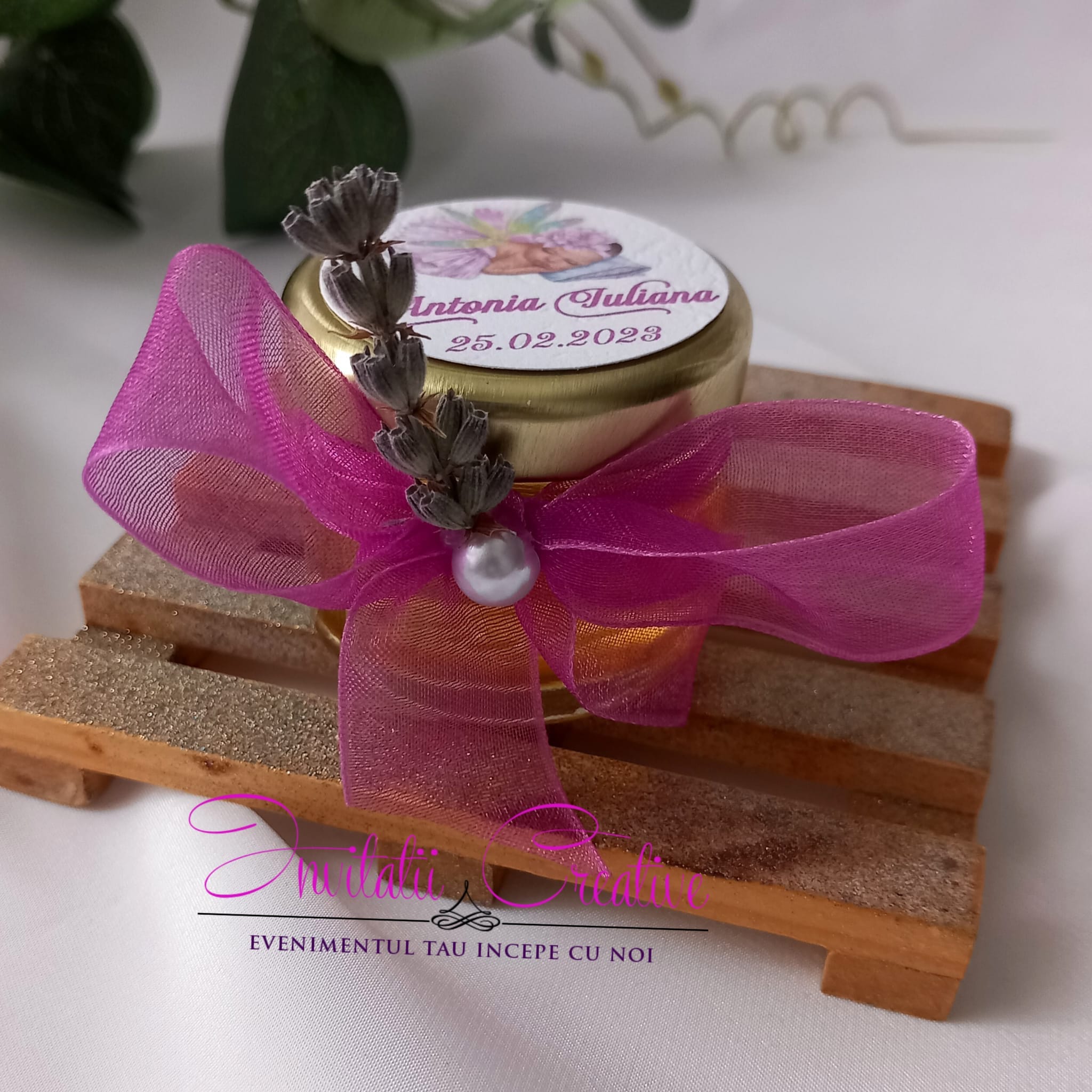Marturie Borcanel cu Miere Fundita Lila Lavanda si Perla