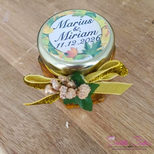 Marturie perfecta pentru invitatii veniti la eveniment. Borcanelul se poate personaliza cu eticheta cu imagine, nume si data, dupa preferinte.*