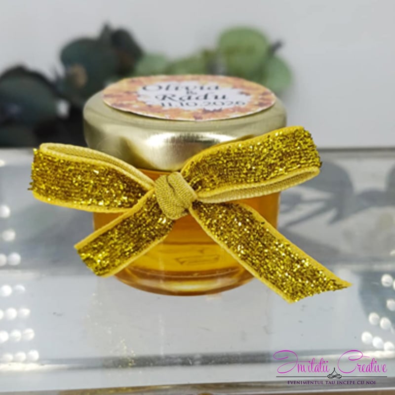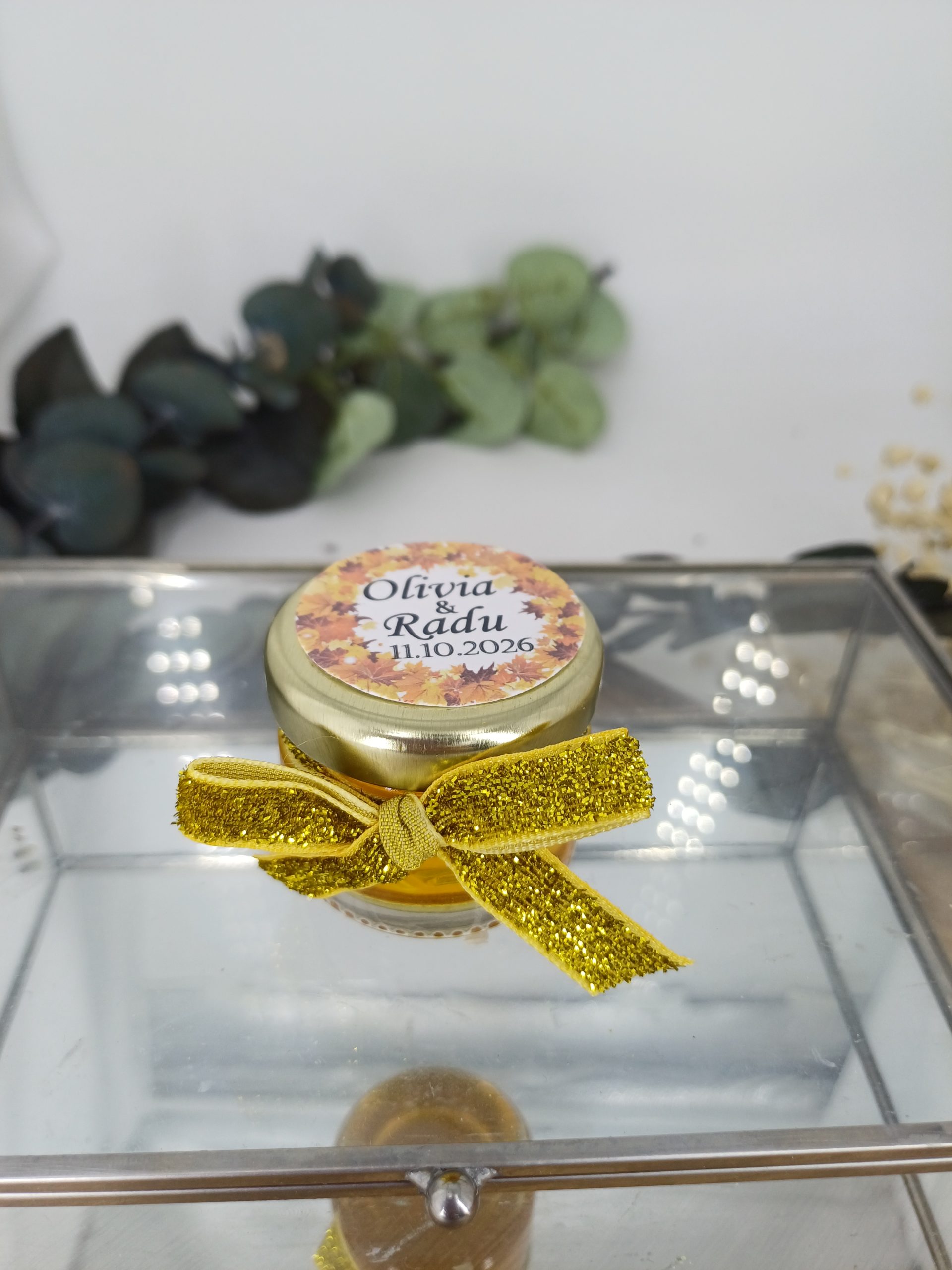 Marturie perfecta pentru invitatii veniti la eveniment. Borcanelul se poate personaliza cu eticheta cu imagine, nume si data, dupa preferinte.*