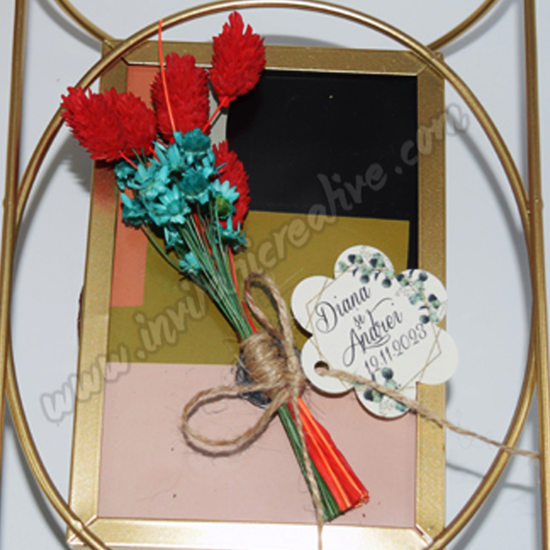 Rama este folosita ca decor, nu este de vanzare si nu este inclusa in pret, buchetul cu eticheta se poate lipi pe orice suprafata metalica.