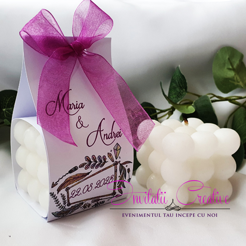 Marturie Lumanare Bubble Mica Coronita din Frunze Acuarela