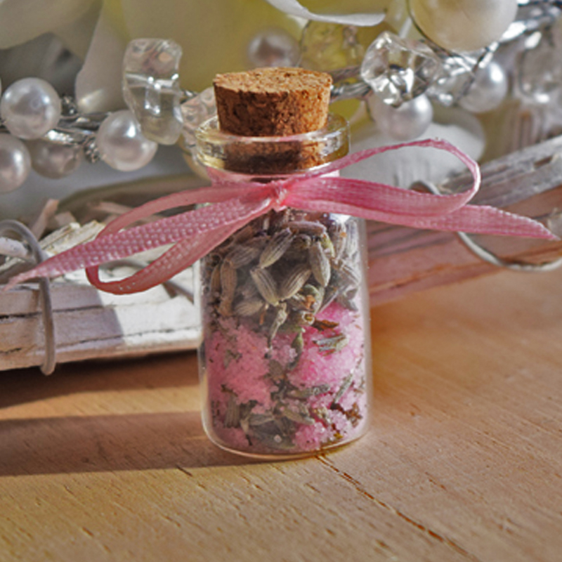 Marturie Sticluta cu Lavanda, Nisip si Fundita roz