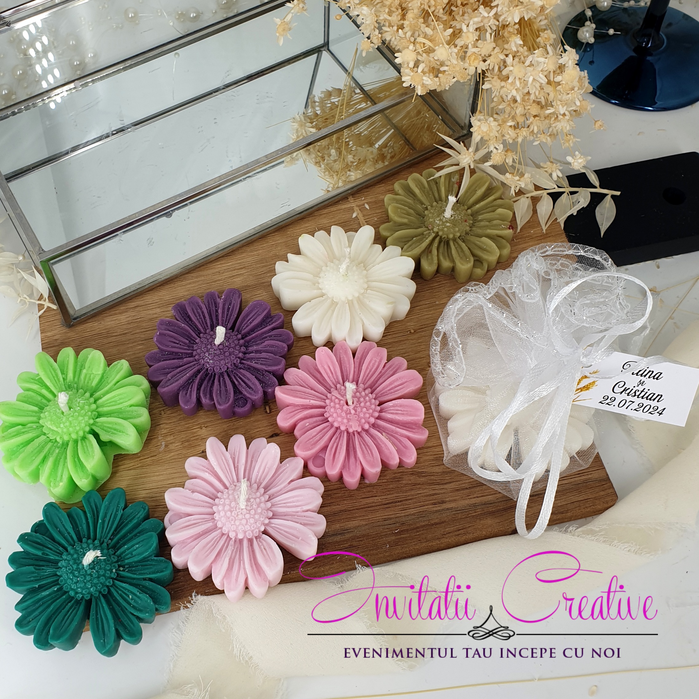 Fiecare lumanare este turnata manual in forme speciale.