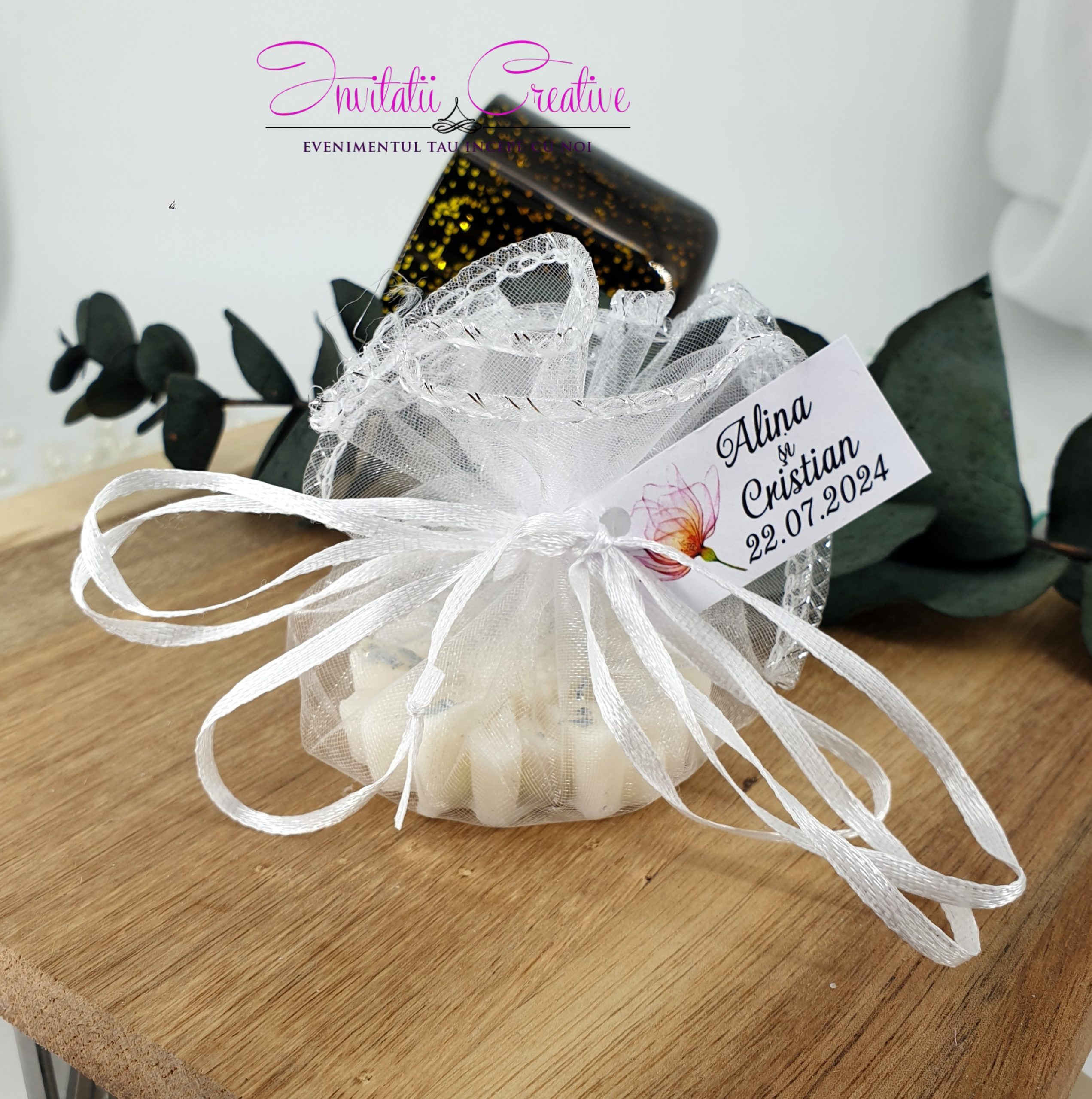 Ambalare: ambalat în saculet de organza, poate fi oferit cadou