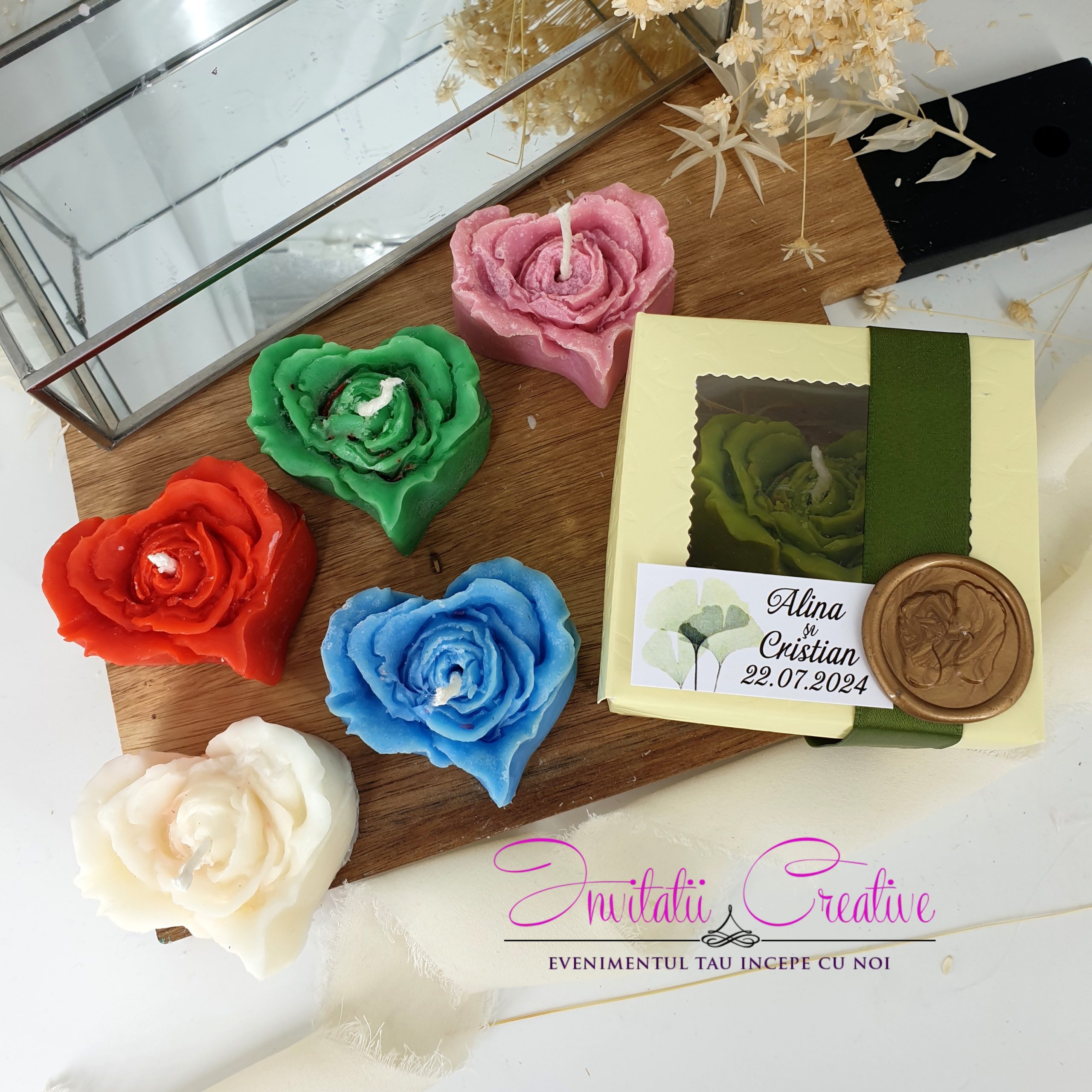 Fiecare lumanare este turnata manual in forme speciale.
