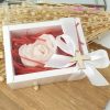 Vine impachetata in cutiuta si poate fi personalizata cu eticheta dorita, prinsa la saculet (aceasta nu este inclusa in pret). Daca doriti eticheta cu nume si data bifati optiunea Eticheta Simpla. Mai multe modele de Etichete cu numele si data evenimentului gasiti aici: Etichete Marturii.