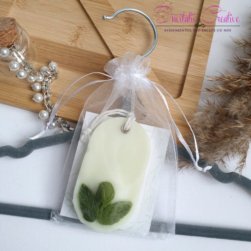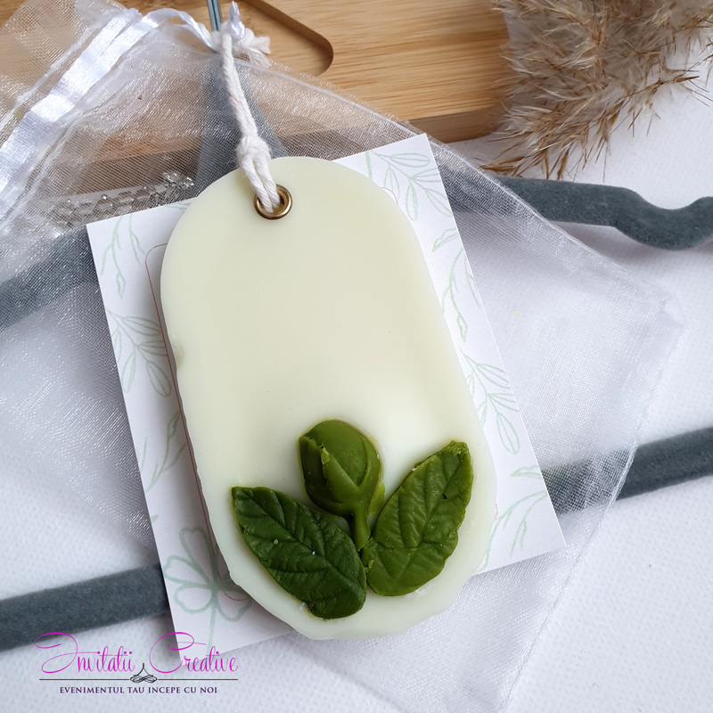 Mărturii nuntă/botez – Ornament parfumat/odorizant dulap, ceară soia pură-Mărturie de nuntă odorizant din ceară de soia cu flori verzi