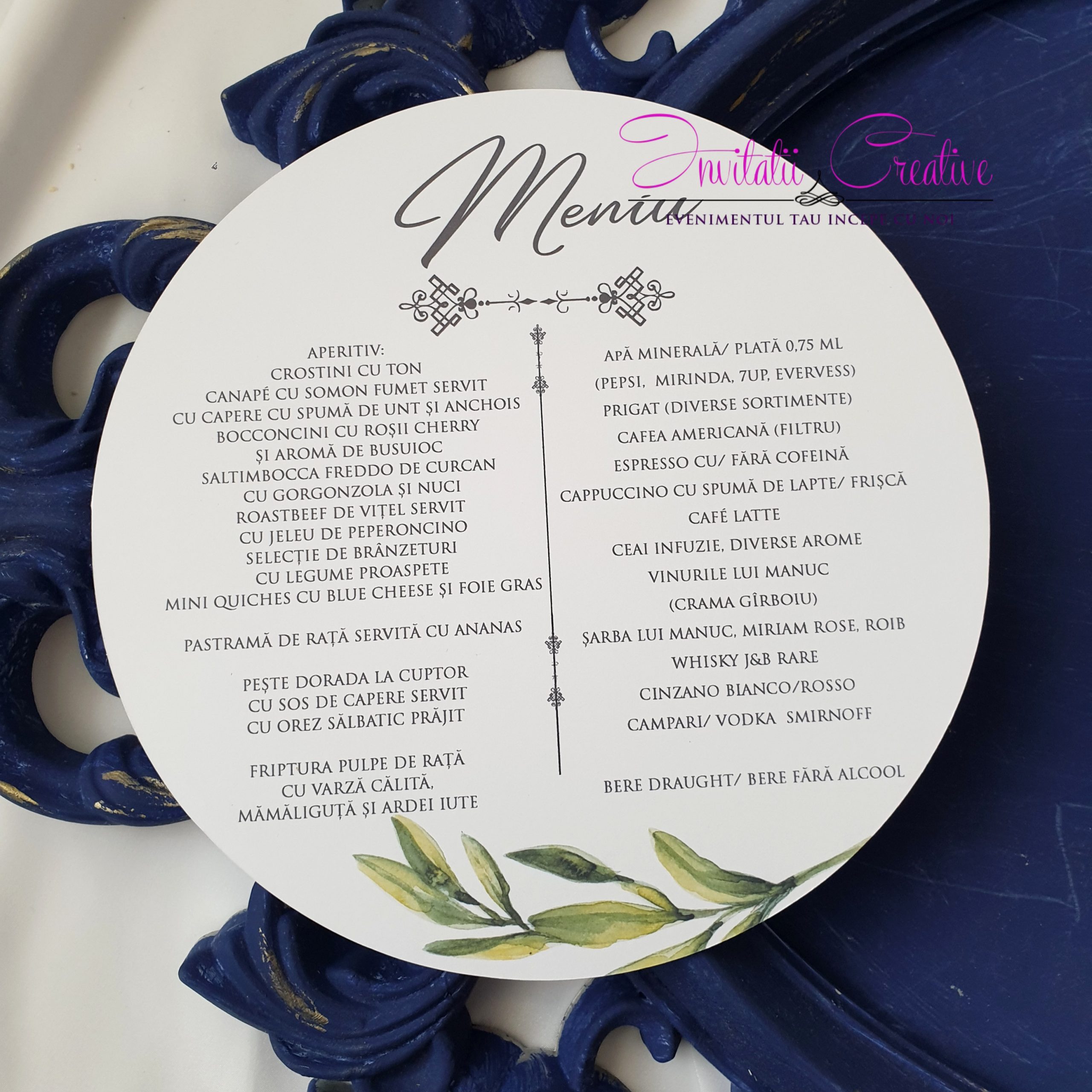 Meniu Nunta Rotund Design Simplu Crenguta Maslin