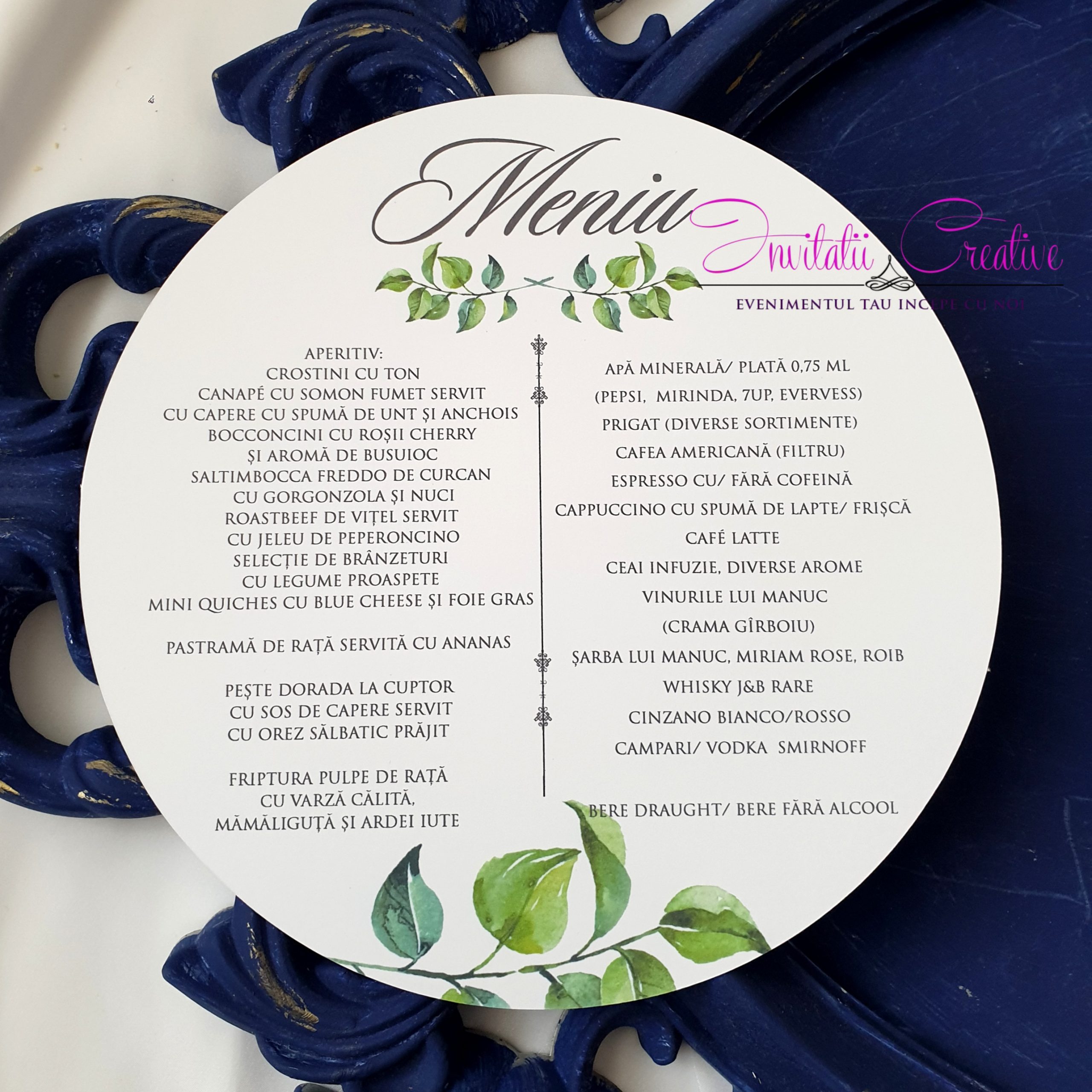Meniu Nunta Rotund Motiv Crengute Verzi Watercolor