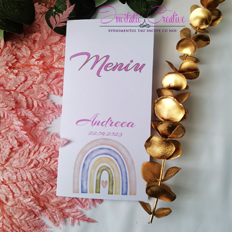 Meniu Botez Curcubeu si Inimioara Watercolor