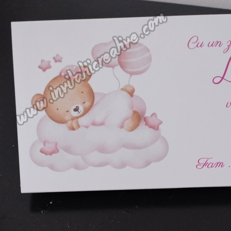 Plic de Bani Botez Haios cu Ursulet Somnoros si Baloane Roz